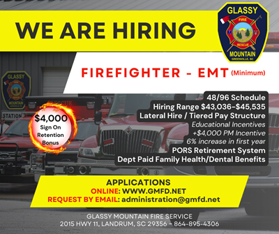 Glassy Mountain: Firefighter/EMT-B (3 New Positions)