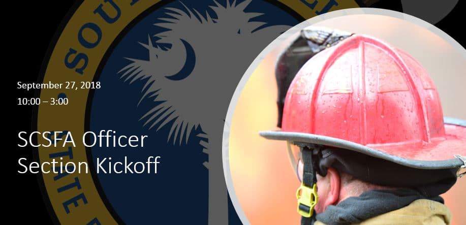 Mark your calendars, September 27th, for the “Kick Off” meeting of the new Officers’ Section sponsored by the South Carolina State Firefighters’ Association. The meeting will begin at 10:00 A.M. at the South Carolina Sheriffs' Association (112 Westpark Blvd. Columbia 20210) where ample parking is available. The Sheriff's Association is across the street from the Firefighters' Association's Columbia Office.