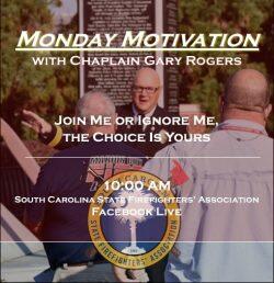 The South Carolina State Firefighters' Association is excited to announce the launch of Monday Motivation with Chaplain Gary Rogers. Monday Motivation will begin Monday, March 23rd at 10:00am LIVE on the Assoication's Facebook page South Carolina State Firefighters' Association.