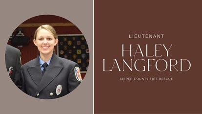 Jasper County Fire-Rescue Lieutenant Haley Langford has a servant’s heart. Shortly after Haley graduated college, it became clear that her beloved grandmother needed a full-time caregiver. It was an easy decision for Haley to put her plans to attend the Marine Corp’s Officer Candidacy School on hold so that she could take care of her grandmother.